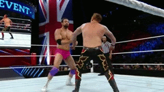 Ambrose o levanta e tenta um DDT mais Charlie escapa e o joga nas cordas em seguida aplica um clothesline em seguida sobe nas cordas rapidamente em quanto Ambrose se levanta e apllica um Diving elbow Attack e